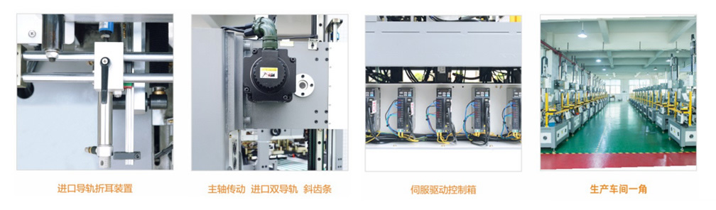 該機(jī)融紙盒的包邊、折入,壓泡為一體,運(yùn)用伺服驅(qū)動斜齒輪和凸輪完成連貫動作,穩(wěn)定流暢,精密耐用,是目前相對合理的一款成型機(jī),也是廣大禮品盒生產(chǎn)廠家的明智必選機(jī)型。