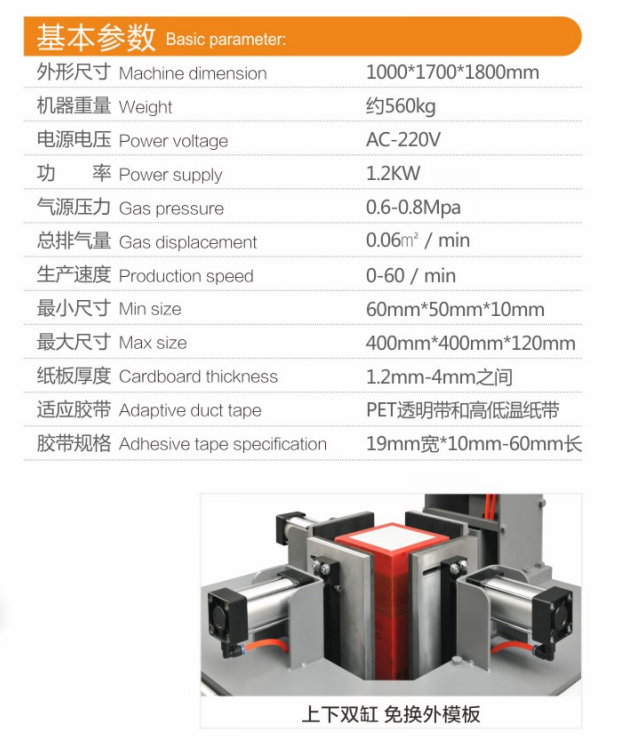 DG-700B豎式酒盒壓盒機(jī)為德高機(jī)械DG 700酒盒壓盒機(jī)的第二代新產(chǎn)品,最新開發(fā)設(shè)計(jì)的這款新機(jī)型,整機(jī)外觀設(shè)計(jì)緊湊,四面均為雙氣缸,壓力更為均衡、合理,五面模板可調(diào),100-150寬*200-300高尺寸以內(nèi)的酒盒免換外模板,操作方便生產(chǎn)效率高。